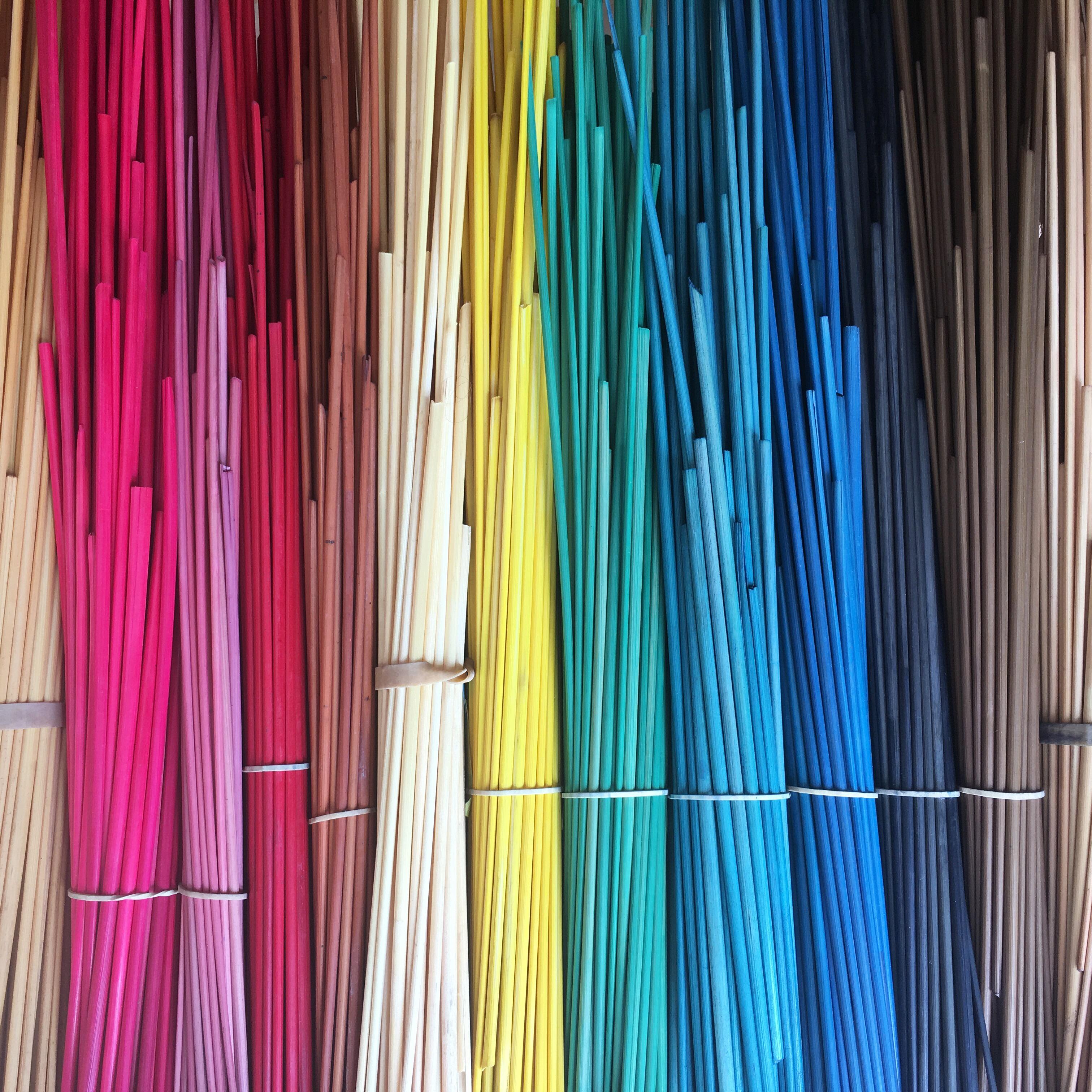 Ensuite vient la teinture, Jean-Luc Rodot utilise le même type de pigment que ceux utilisé pour les vêtements. La paille étant très difficile à teintée, des pigments naturels ne tiendraient pas. Il propose ainsi une large gamme de couleurs.